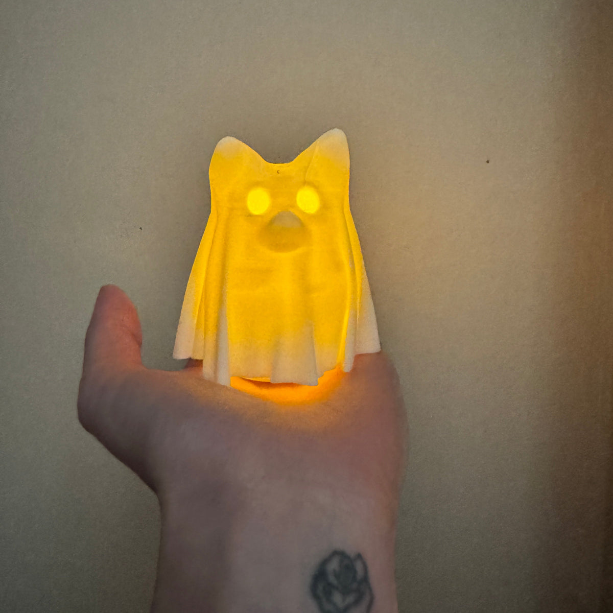 This 3D-printed dog in a ghost costume is the perfect way to add a little Halloween magic to your home. Hollow inside to sit over an LED tea light (included), this ghost pup glows with charm, no tricks, just treats.