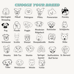 2. In the notes section at checkout, enter the breed and the text you want. Example: Corgi Whiskey's Mom, Husky Koa's Aunt, Shepsky Ryuk's Dad, etc